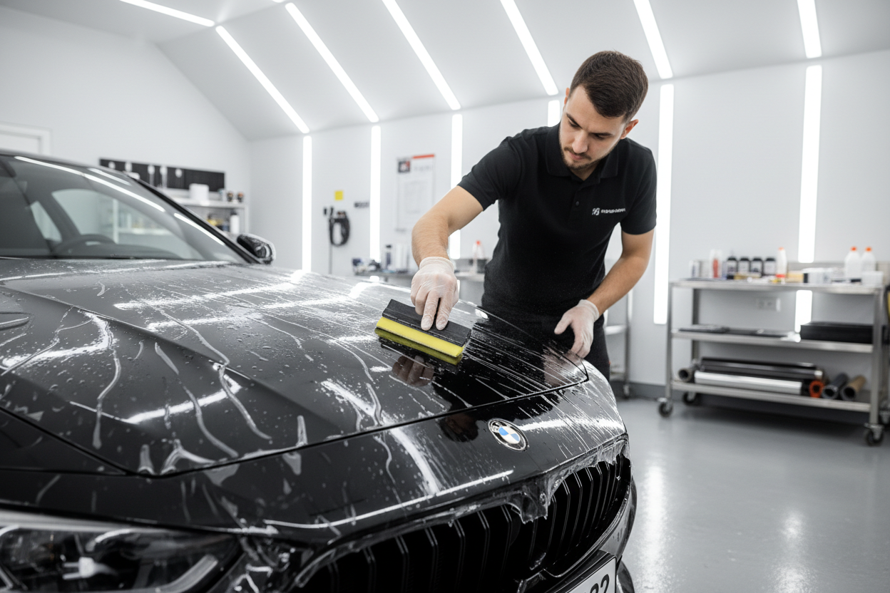 The OPTIX NANO PPF Training package for the serious includes one full roll of premium OPTIX NANO paint protection film, tailored for precise application on key vehicle areas: one front bumper, one bonnet, one fender, two headlights, and two mirrors. This comprehensive kit is ideal for technicians seeking to master advanced PPF installation techniques. The complete process typically takes one day, providing hands-on experience in handling, cutting, fitting, and finishing the film with professional-grade results. This training package equips you with the skills and confidence to deliver durable and seamless paint protection on high-visibility surfaces..